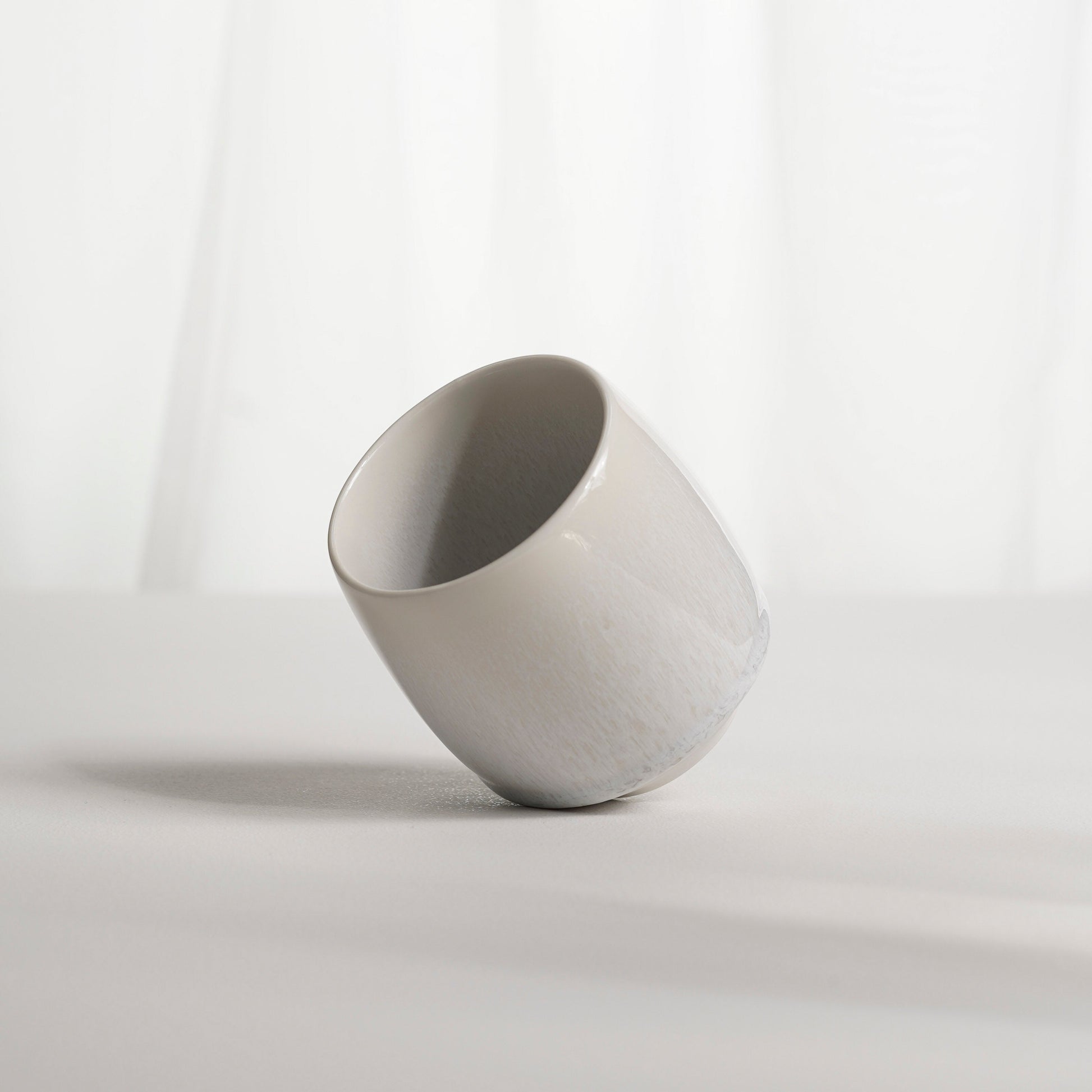 Нижня частина чашки залишається без поливи — шліфована порцеляна, що зберігає тактильний контакт із природною текстурою матеріалу та підкреслює ручну роботу.