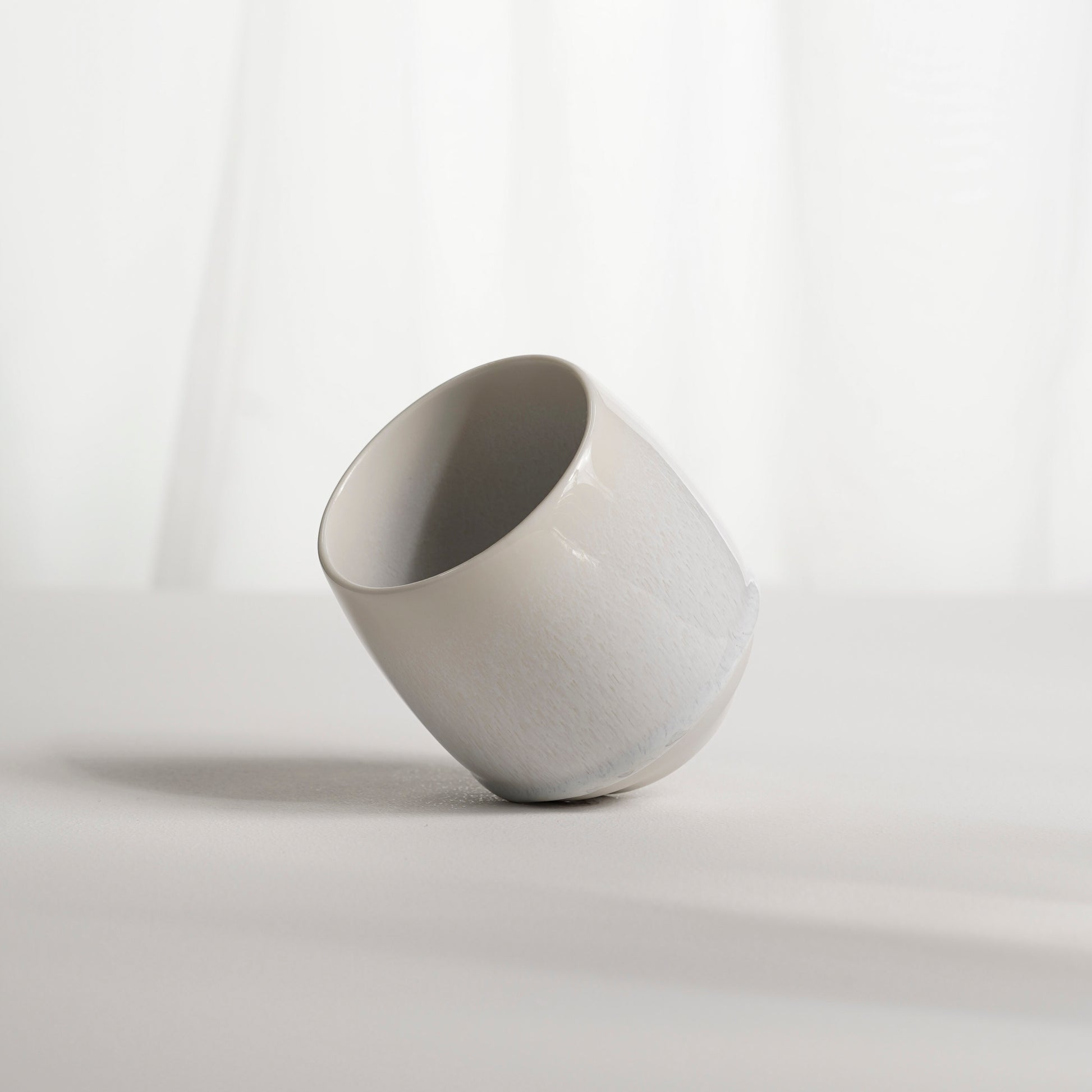 Порцелянова чашка ручної роботи. Виготовлена з білої порцеляни та вкрита унікальною авторською поливою, яка створює глибину кольору та м’яке світлове сяйво на поверхні.