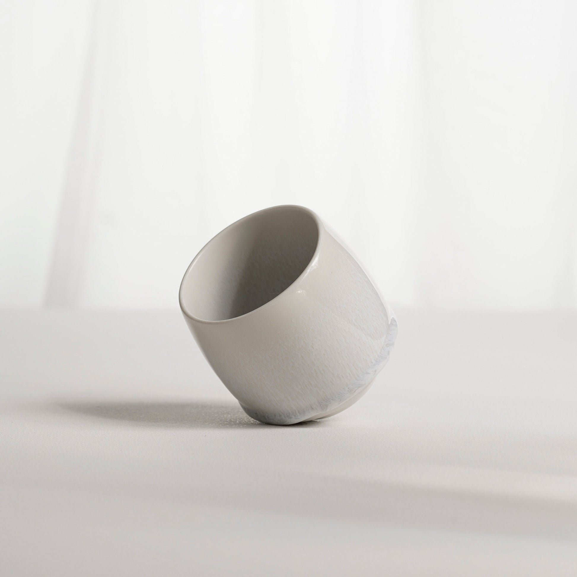 Нижня частина чашки залишається без поливи — шліфована порцеляна, що зберігає тактильний контакт із природною текстурою матеріалу та підкреслює ручну роботу.