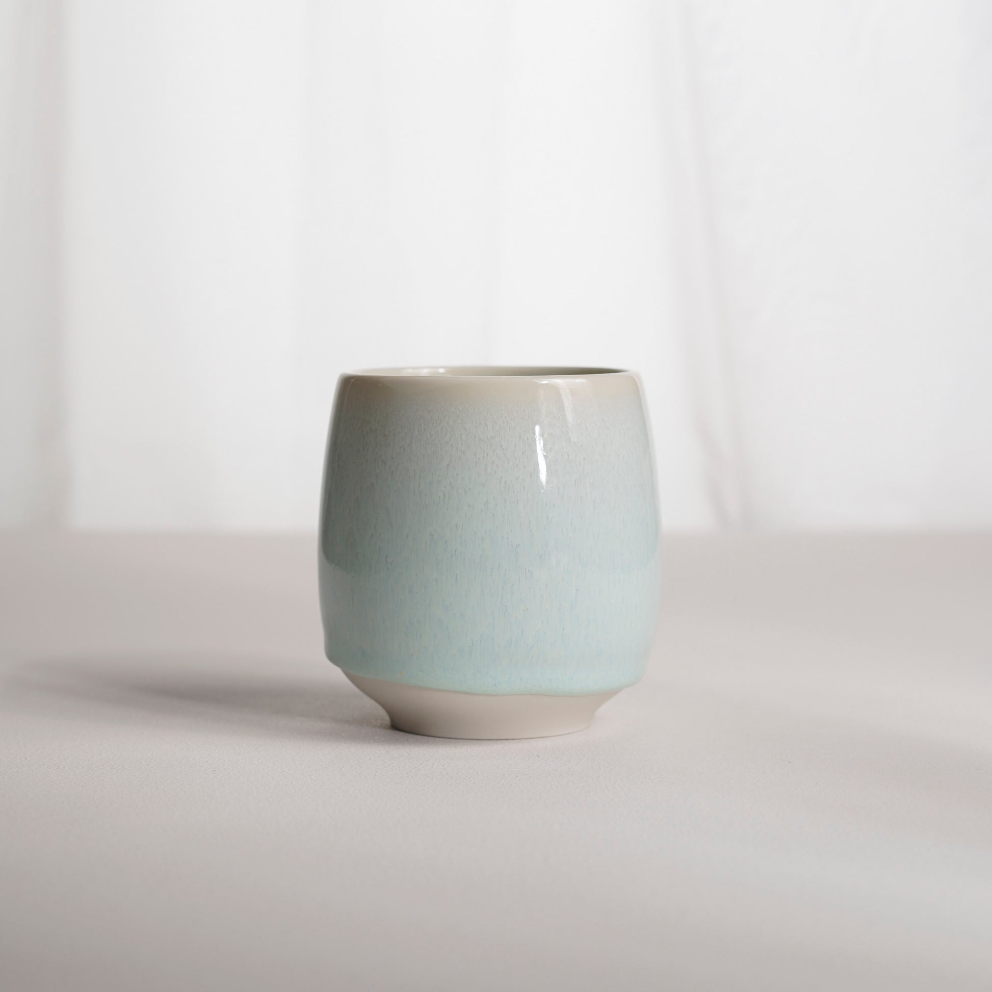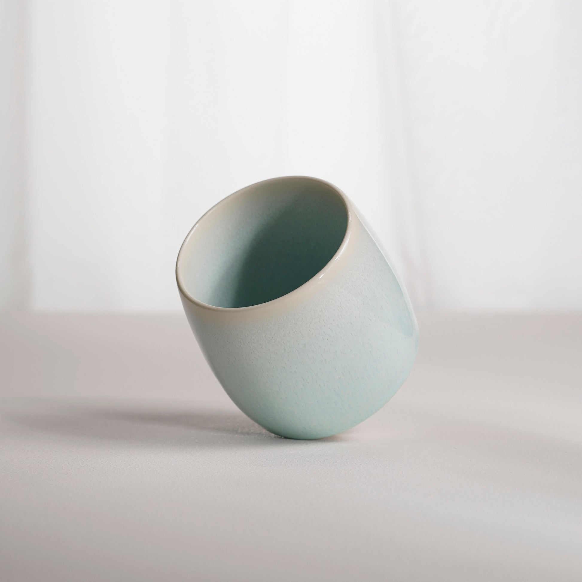Порцелянова чашка ручної роботи. Виготовлена з білої порцеляни та вкрита унікальною авторською поливою, яка створює глибину кольору та м’яке світлове сяйво на поверхні.